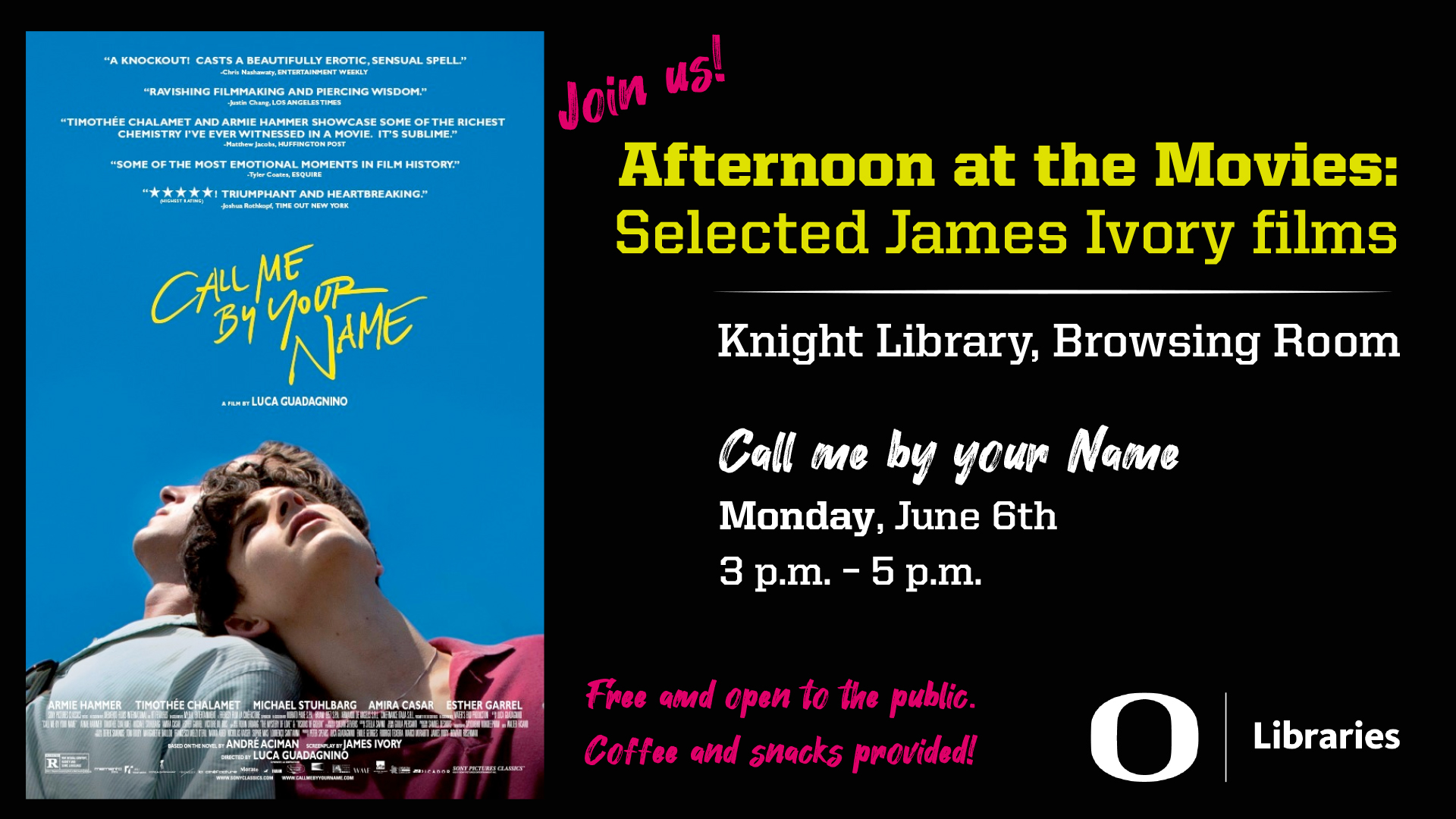 Uoregon Libraries On Twitter Join Us Afternoon At The Movies Selected James Ivory Films Free Amp Open To The Public All Will Be Shown In The Knight Library Mon